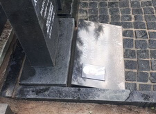 Мы изготовили небольшую плиту из чёрного гранита, на её поверхность прикрепили фотокерамику с изображением покойного.